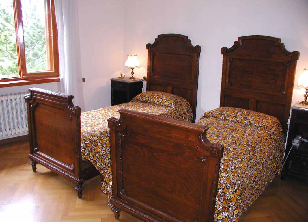 • Camera matrimoniale (12 mq): con vista sul campo da tennis, armadi a parete e possibilità di separare i letti.