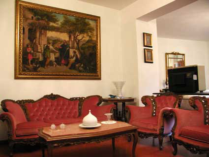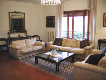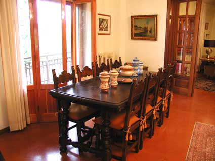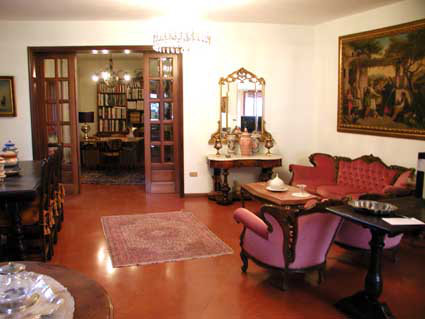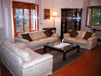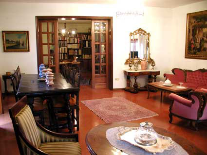• Soggiorno formale (63 mq): elegante soggiorno in stile francese con camino, pavimenti in terracotta e due porte che conducono alla terrazza panoramica.